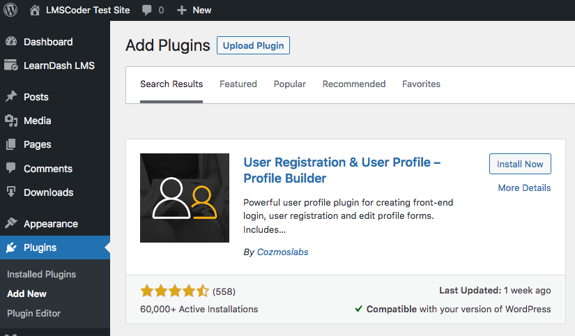 Anyhoo, install Profile Builder it however you prefer to install free WordPress plugins hosted on WordPress.org.