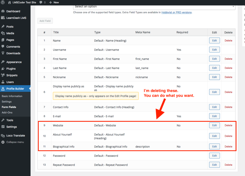 It’s up to you, although in my test case I decided to remove “Website” and “Biographical Info” since I don’t plan on doing anything with that information.