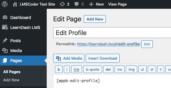 I will name the page “Edit Profile” and it will be accessible at the following URL: https://learndash.local/edit-profile/