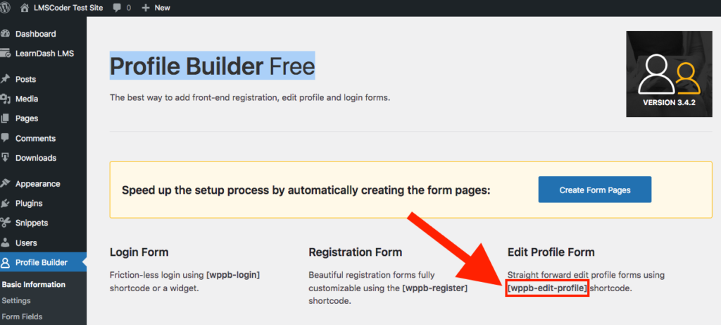 On that page, you’ll see the [wppb-edit-profile] mentioned. Take note of that! We’ll be plopping it on the page we’re about to create.
